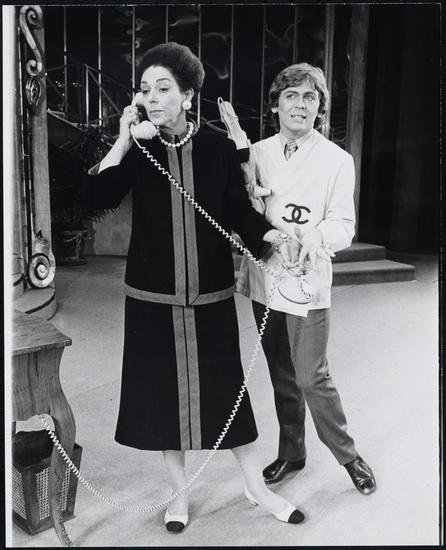 [Suzanne Rogers as Solange and Daniel Davis as Sebastian Baye in the national tour of "Coco".]