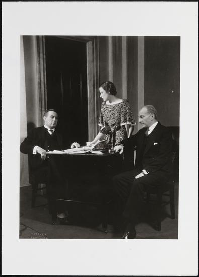 [Walter C. Kelly as Solomon Fitzmaurice, J. Edward Bromberg as Wingblatt, and Russell Collins as Peebles in "Both Your Houses".]
