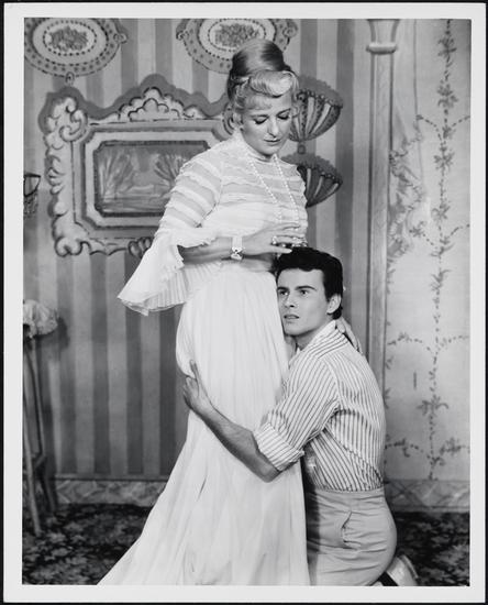 [Kim Stanley as L?a de Lonval and Horst Buchholz as Fr?d?rick Peloux in "Ch?ri".]