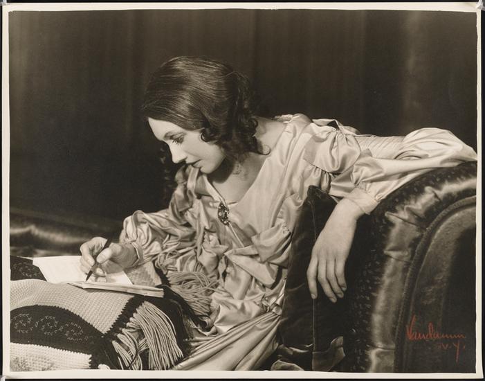 [Katharine Cornell as Elizabeth Barrett in "The Barretts of Wimpole Street".]