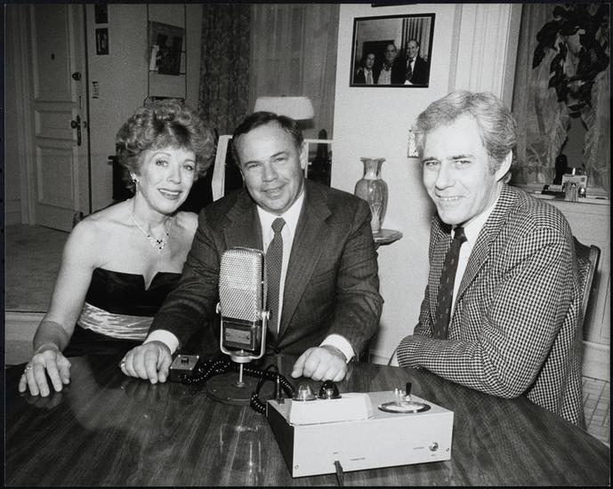 [Tex McCrary, Holland Taylor, Jinx Falkenburg, and Keith Charles on the set of "Breakfast with Les and Bess".]