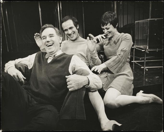 [Cynthia Harris as Sarah, Larry Kert as Robert, and Kenneth Kimmins as Harry in "Company".]