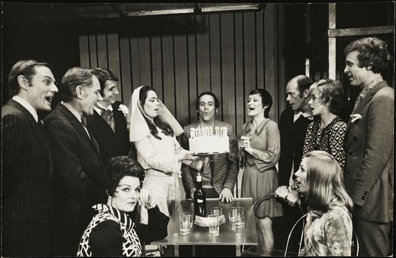 [Cynthia Harris as Sarah, Larry Kert as Robert, and Kenneth Kimmins as Harry in "Company".]
