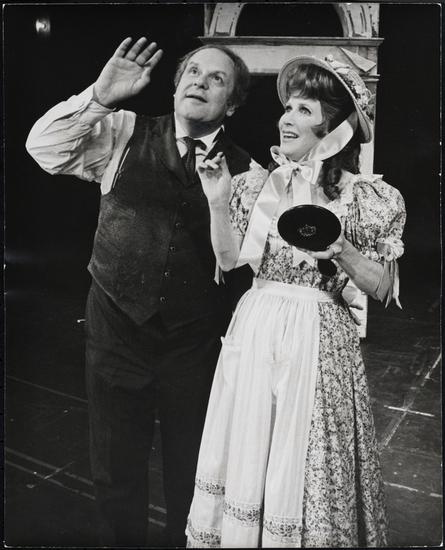 [Julie Harris as Gertie Kessel and Jack Weston as Dietrich Merkenschrift in "Break a Leg".]