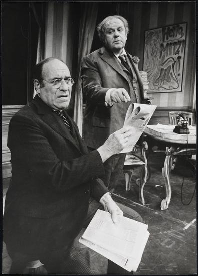 [Julie Harris as Gertie Kessel and Jack Weston as Dietrich Merkenschrift in "Break a Leg".]