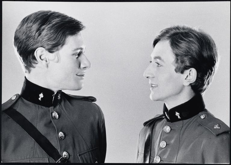 [Paul Jones as 2nd Lt. Arthur Drake and Jeremy Clyde as 2nd Lt. Edward Millington in "Conduct Unbecoming".]