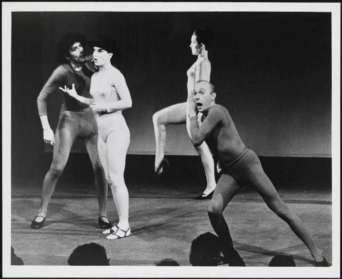 [Van Dexter as the Younger Son, Jean Erdman as Anna Livia Plurabelle, and Leonard Frey as the Elder Son in "The Coach with the Six Insides".]