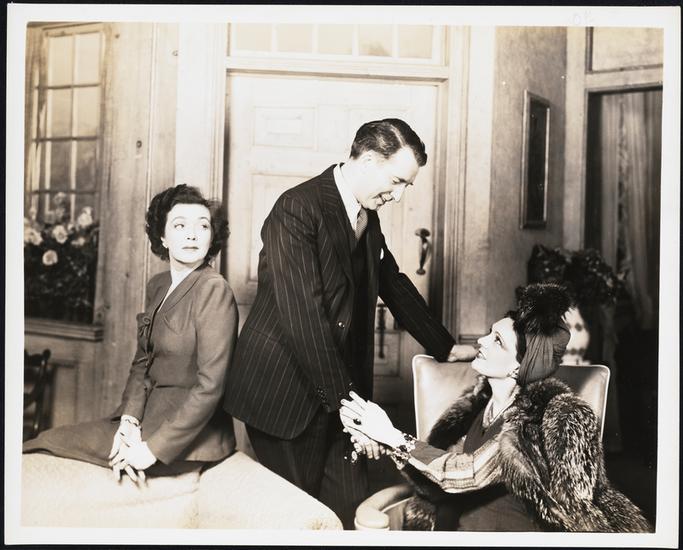 [Phyllis Thaxter as Claudia Naughton, Donald Cook as David Naughton, and Frances Starr as Mrs. Brown in "Claudia".]