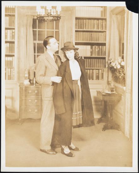 [Donald Cook as David Naughton and Frances Starr as Mrs. Brown in "Claudia".]