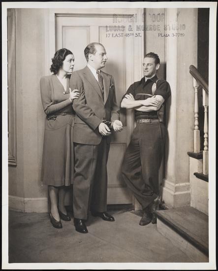 [Roy Hargrave as Hal Wilson, Jay Adler as Buck, and Dodee Wick as Agnes in "Blind Alley".]