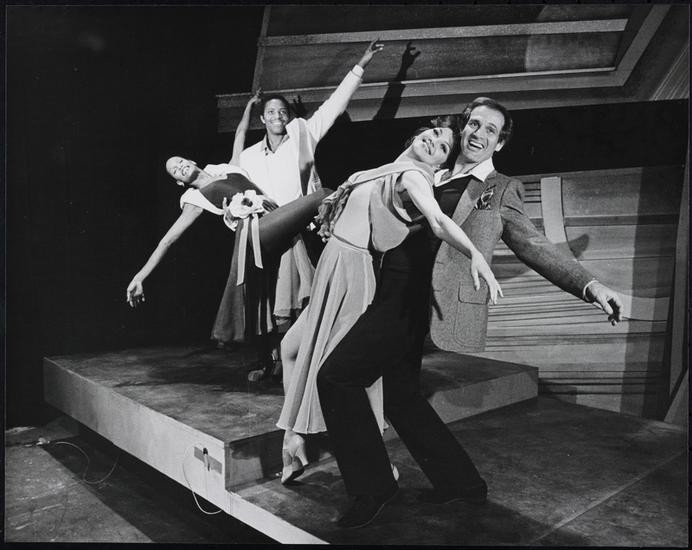 [Irving Allen Lee as Randy, Kelly Bishop as Anna, Larry Kert as Mark, and Trina Parks as Sanamu in "Changes".]