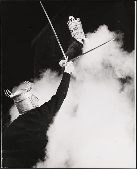 [Peter Cook and Jonathan Miller in"Beyond the Fringe".]