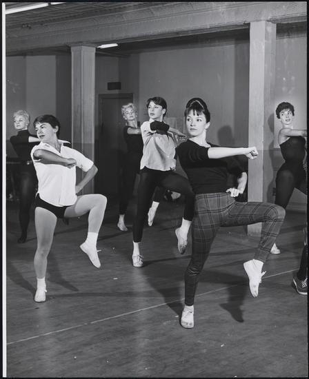 [Pat Ferrier, Betty Linton, Shellie Farrell, and Margery Beddow rehearsing for "The Conquering Hero".]