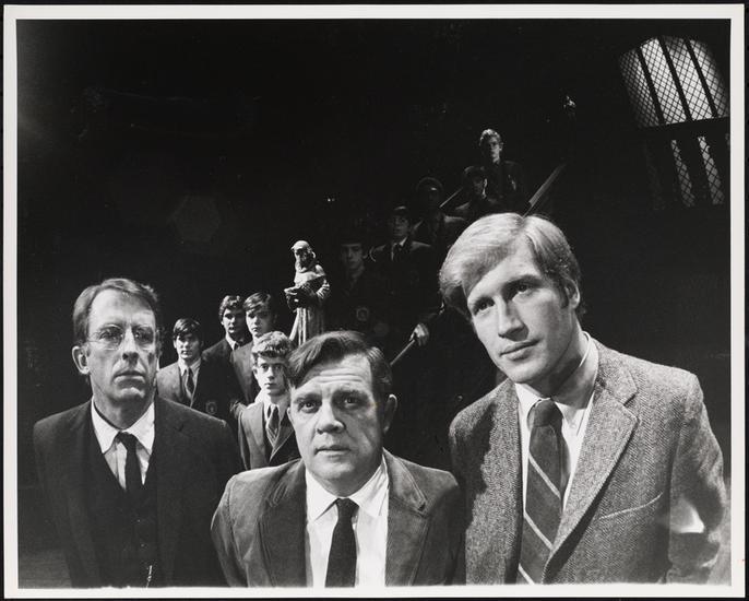 [Michael McGuire as Father Frank Mozian, Ken Howard as Paul Reese, and Pat Hingle as Joseph Dobbs in "Child's Play".]