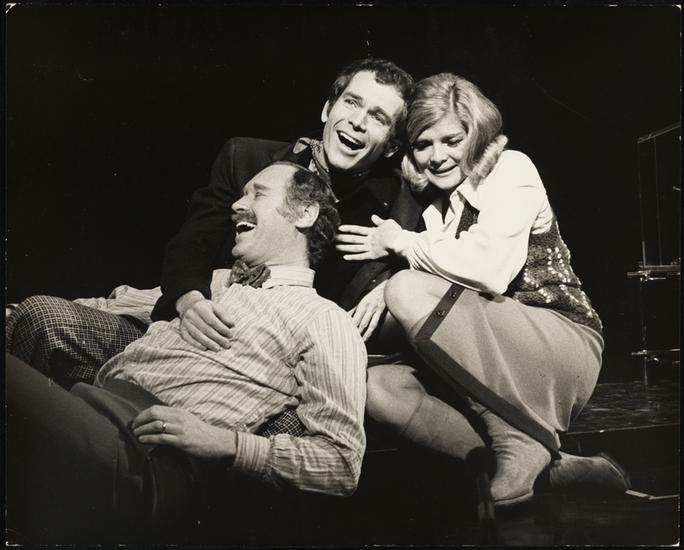 [Lee Goodman as David, Larry Kert as Robert, and Teri Ralston as Jenny in "Company".]