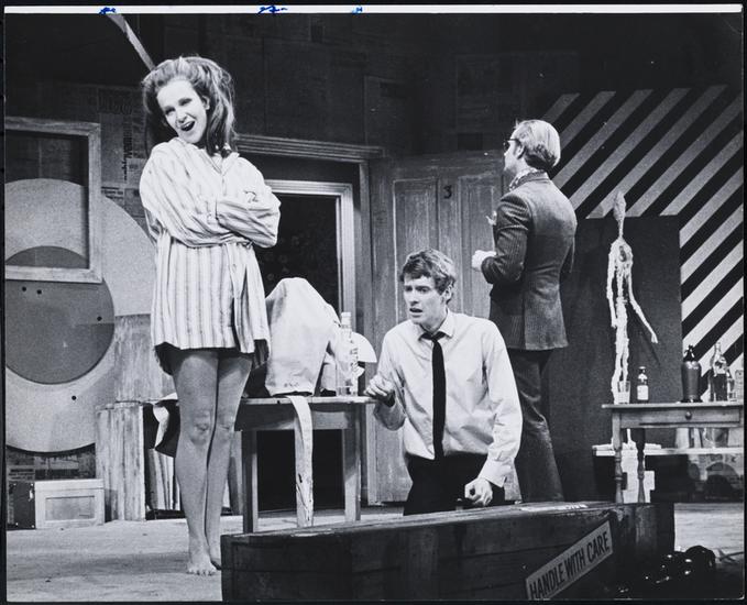 [Jordan Christopher as Brindsley Miller and Geraldine Page as Clea in "Black Comedy".]