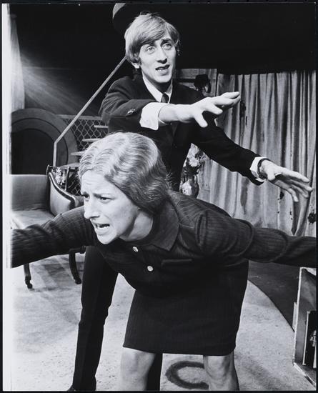[Michael Crawford as Brindsley Miller in "Black Comedy".]