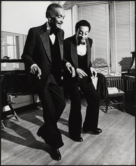 [Savion Glover as Young Jelly and Gregory Hines as Jelly Roll Morton in "Jelly's Last Jam".]