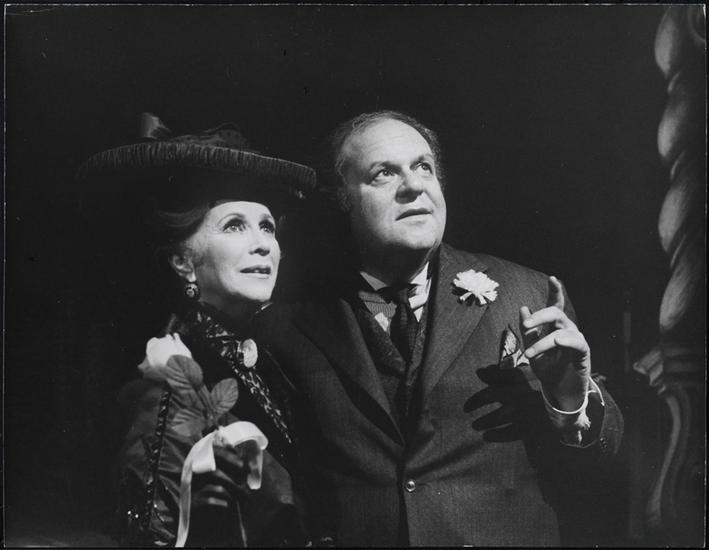 [Julie Harris as Gertie Kessel and Jack Weston as Dietrich Merkenschrift in "Break a Leg".]
