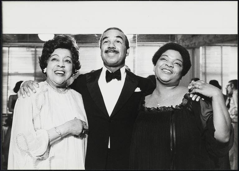 [Elisabeth Welch, Adelaide Hall, Bobby Short, Edith Wilson, and Nell Carter during a rehearsal for "Black Broadway".]