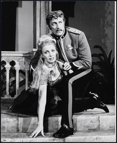 [Jeremy Clyde as 2nd Lt. Edward Millington and Elizabeth Shepherd as Mrs. Marjorie Hasseltine in "Conduct Unbecoming".]