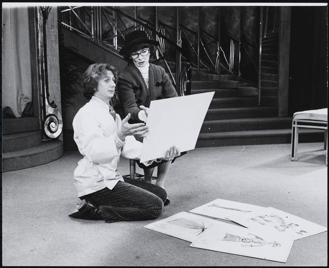 [Katharine Hepburn as Coco Chanel and Gale Dixon as Noelle in "Coco".]
