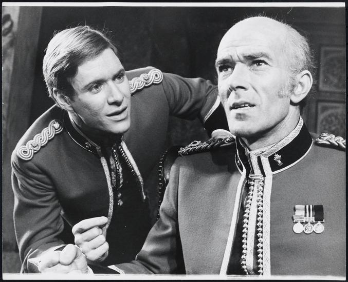 [Michael Barrington as Colonel Strang and Paul Jones as 2nd Lt. Arthur Drake in "Conduct Unbecoming".]