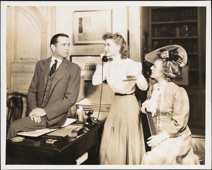 [Dorothy McGuire as Claudia Naughton, Donald Cook as David Naughton, and Frances Starr as Mrs. Brown in "Claudia".]