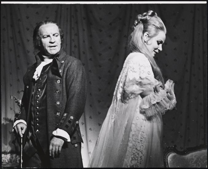 [Lauren Jones as Yvonne and Ulla Sallert as Madame La Comtesse Diane de Vobrillac in "Ben Franklin in Paris".]