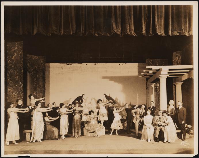 [The Boys Sextette with Raymond Crane surrounded by the Dancing Quartet in "The Clinging Vine".]