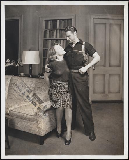 [Bernadine Hayes as Mazie Stoner and Roy Hargrave as Hal Wilson in "Blind Alley".]