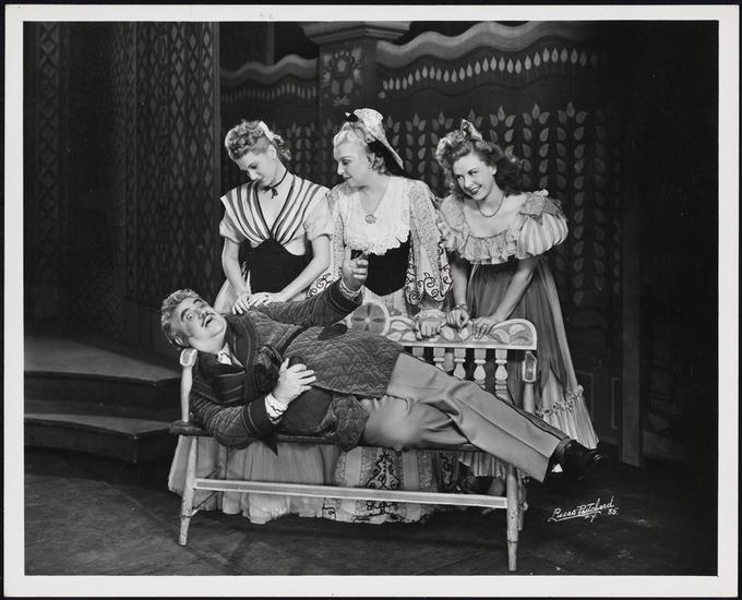 [Frances McCann as Nadina Popoff and Keith Andes as Lieutenant Bumerli in "The Chocolate Soldier".]
