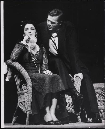 [Ben Gazzara and Mildred Dunnock in rehearsal for "Traveller Without Luggage".]