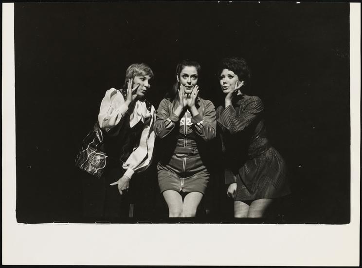[Pamela Myers as Marta, Susan Browning as April, and Donna McKechnie as Kathy in "Company".]