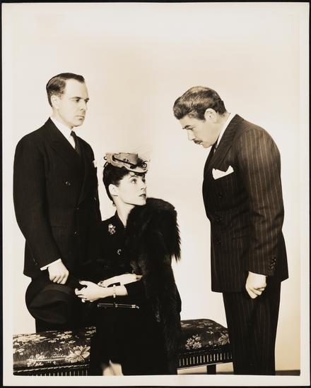[Clara Langsner as Sarah Becker, Paul Muni as George Simon, and Joseph Pevney as Harry Becker in "Counsellor-at-Law".]