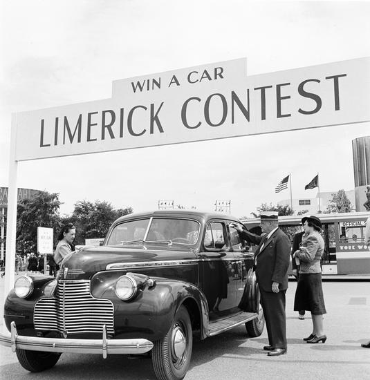 [Two men in Alfa Romeo car, New York World's Fair.]