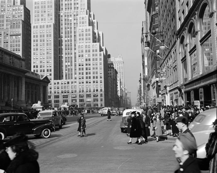 Pedestrians. 5th Avenue - 40th Street. Passing the N.Y. Public Library.