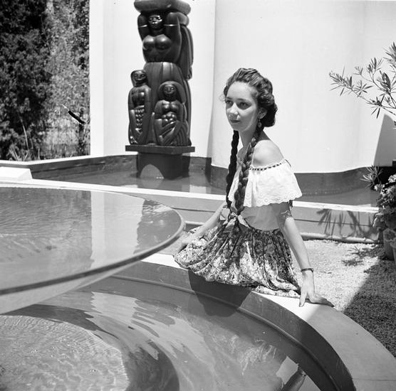 [Young woman in traditional dress, Venezuelan pavilion, New York World's Fair.]