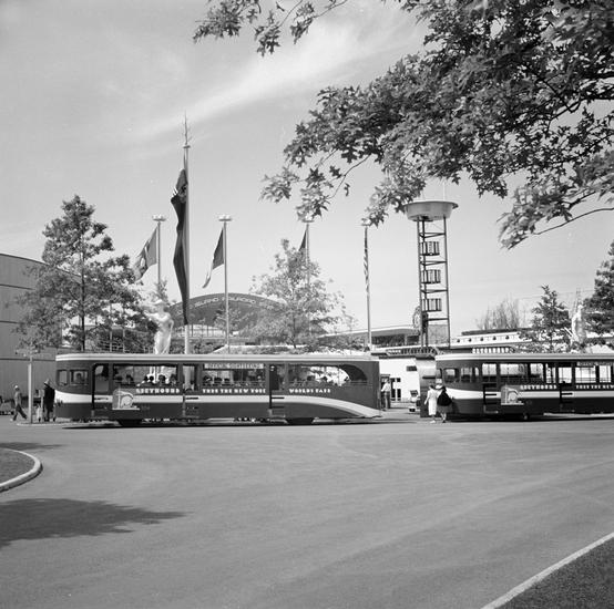 [Greyhound trolley in Amusement Zone, New York World's Fair.]
