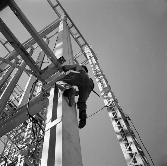 [Man working at the New York World's Fair construction site.]