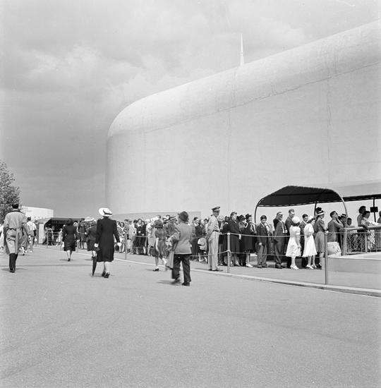 [People waiting in line at the Ford pavilion, New York World's Fair.]