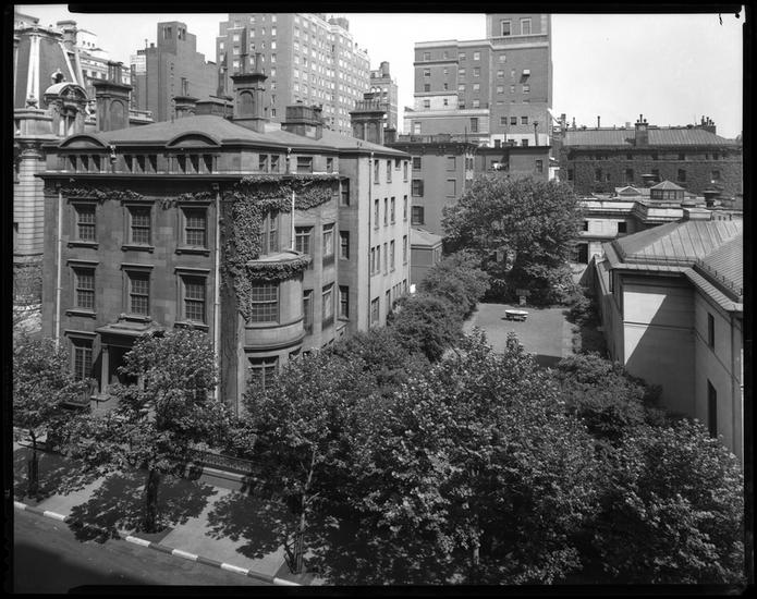 Madison Avenue at 36th and 37th Streets. J. P. Morgan property looking east through garden from John Murray House.