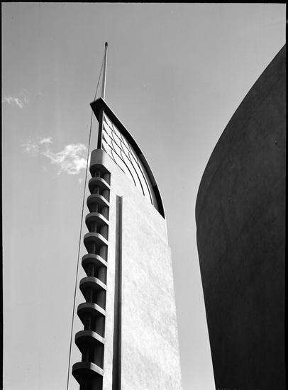 [Chrysler pavilion during construction, New York World's Fair site.]