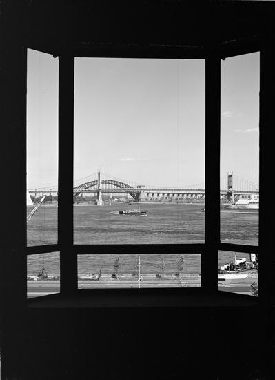 [View from a roof looking to the East River and the Triborough and Hell Gate bridges.]