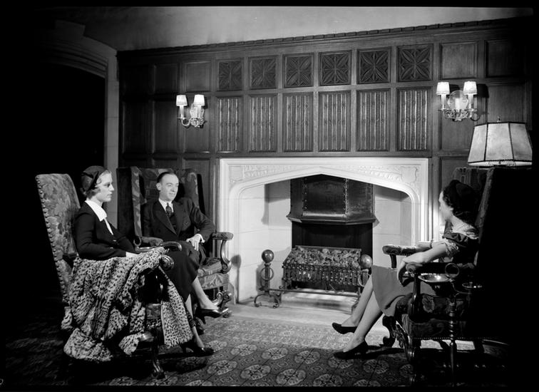 East 41st Street and Tudor City Place. Tudor City. Interior, group at tea in dining room