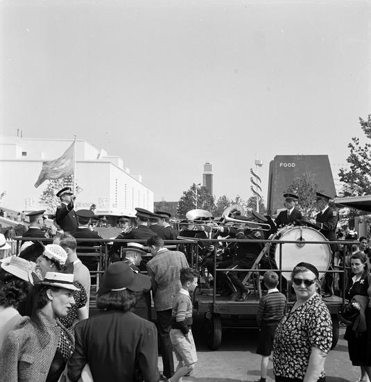 [Scottish band playing at Merrie England exhibit, New York World's Fair.]