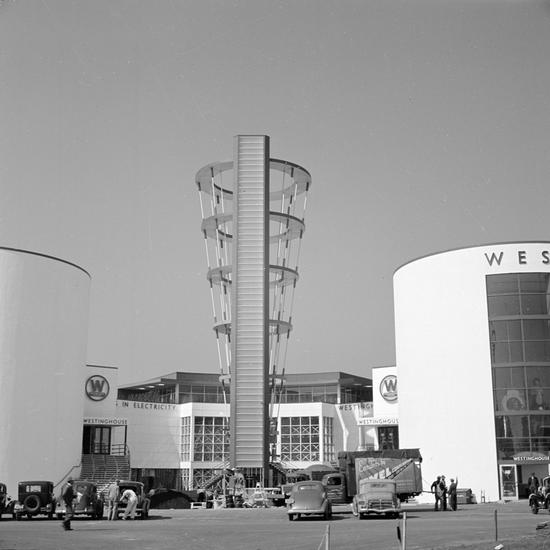 [People gathered in front of Westinghouse exhibit at the New York World's Fair.]