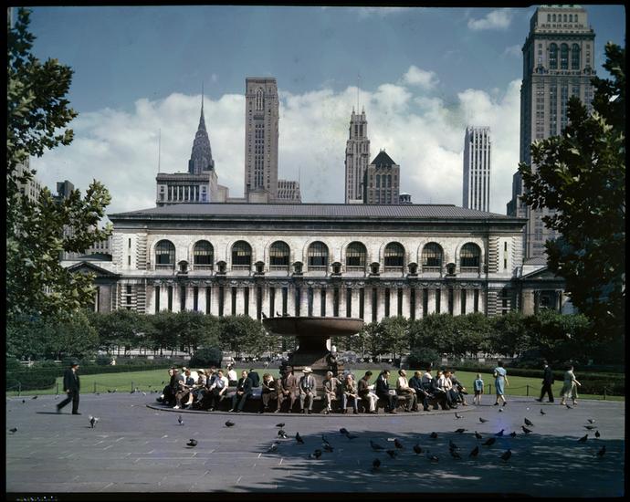 5th Avenue and West 42nd Street. New York Public Library, fountain in rear.