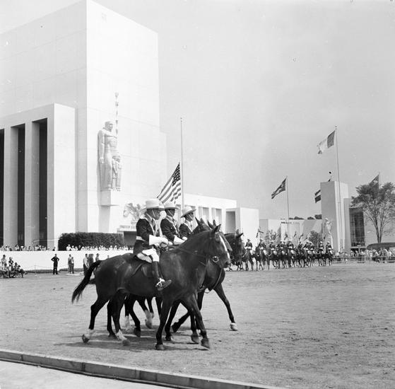 [Military procession in the Hall of Nations, Government Zone, New York World's Fair.]