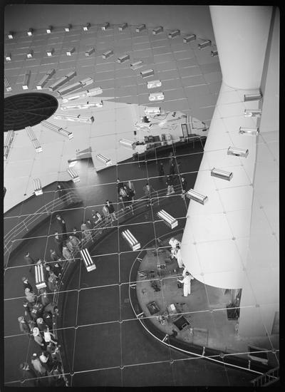 New York Worlds Fair. Glass Building. Interior, reflection in ceiling